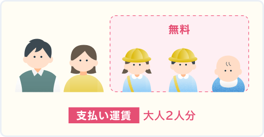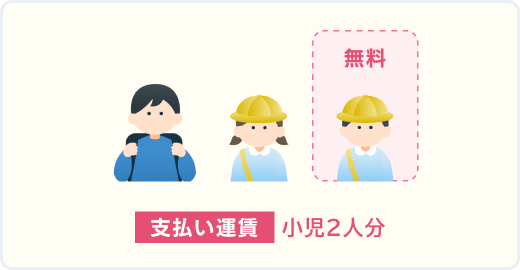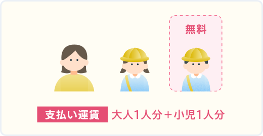 - ※2大人又は小児に同伴する場合は1人まで無料です。2人目から及び幼児のみで乗車する場合は小児運賃が必要です