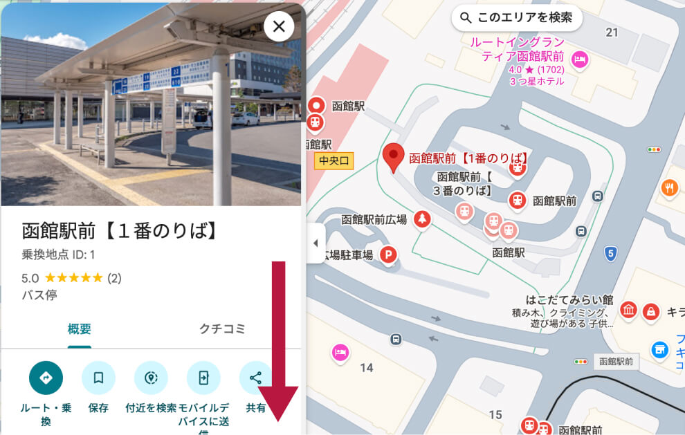 Googleマップ上でバス停を選択します。