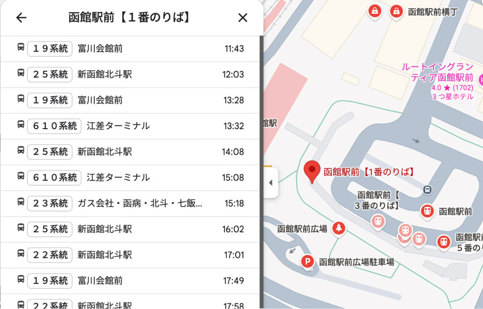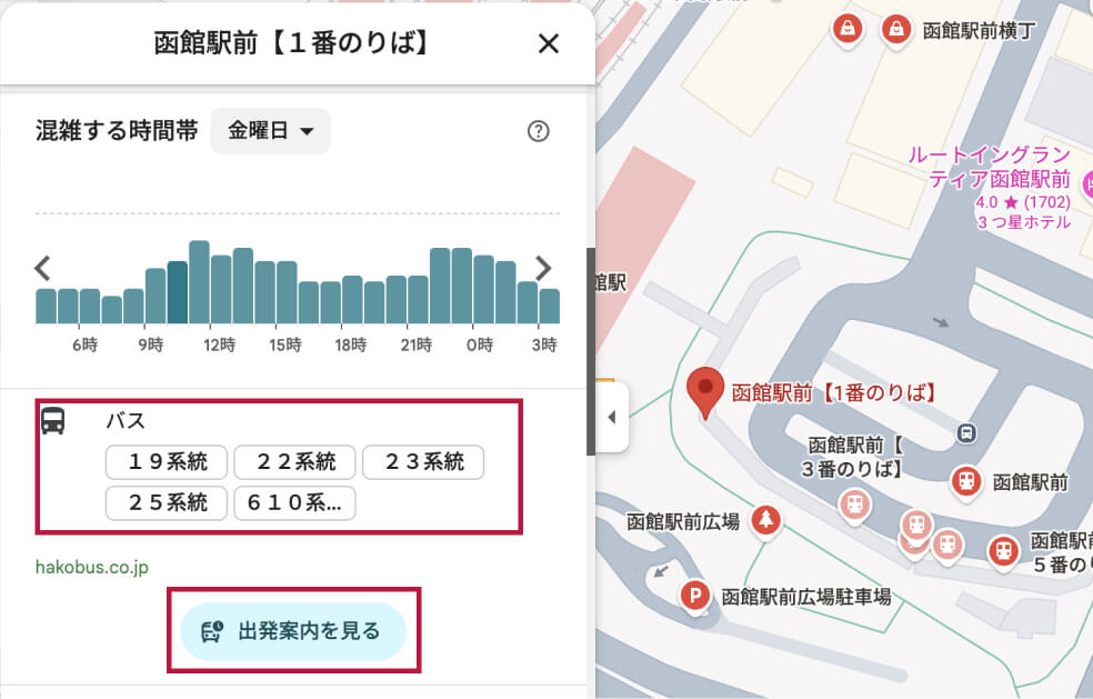 Googleマップから時刻表を検索する