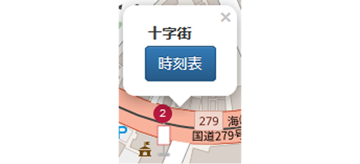 バス停をクリックするとバス停名と時刻表表示ボタンが表示されます。
