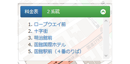 また、路線名と料金表ボタンが表示されます。