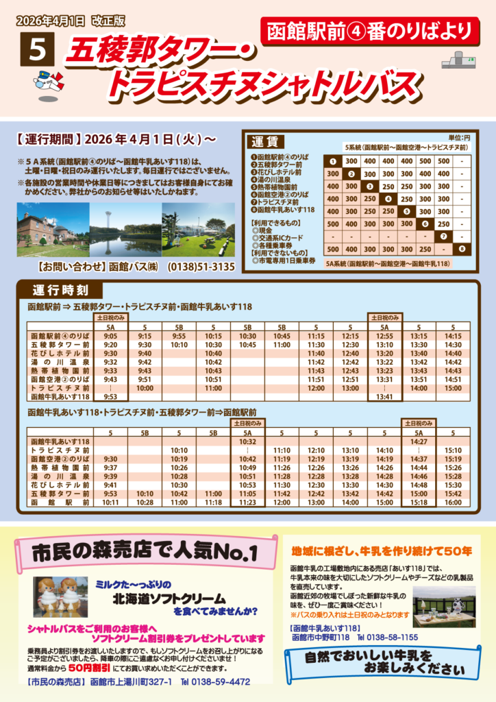 ■5系統:五稜郭タワー・トラピスチヌシャトルバス