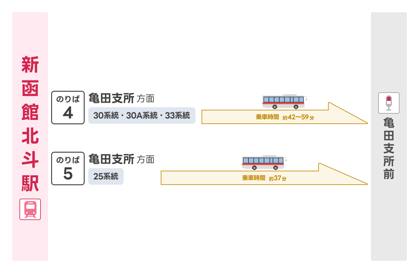 | 新函館北斗駅 | 亀田支所前 | 4番のりば | 30/30A系統 | 50~59分 |